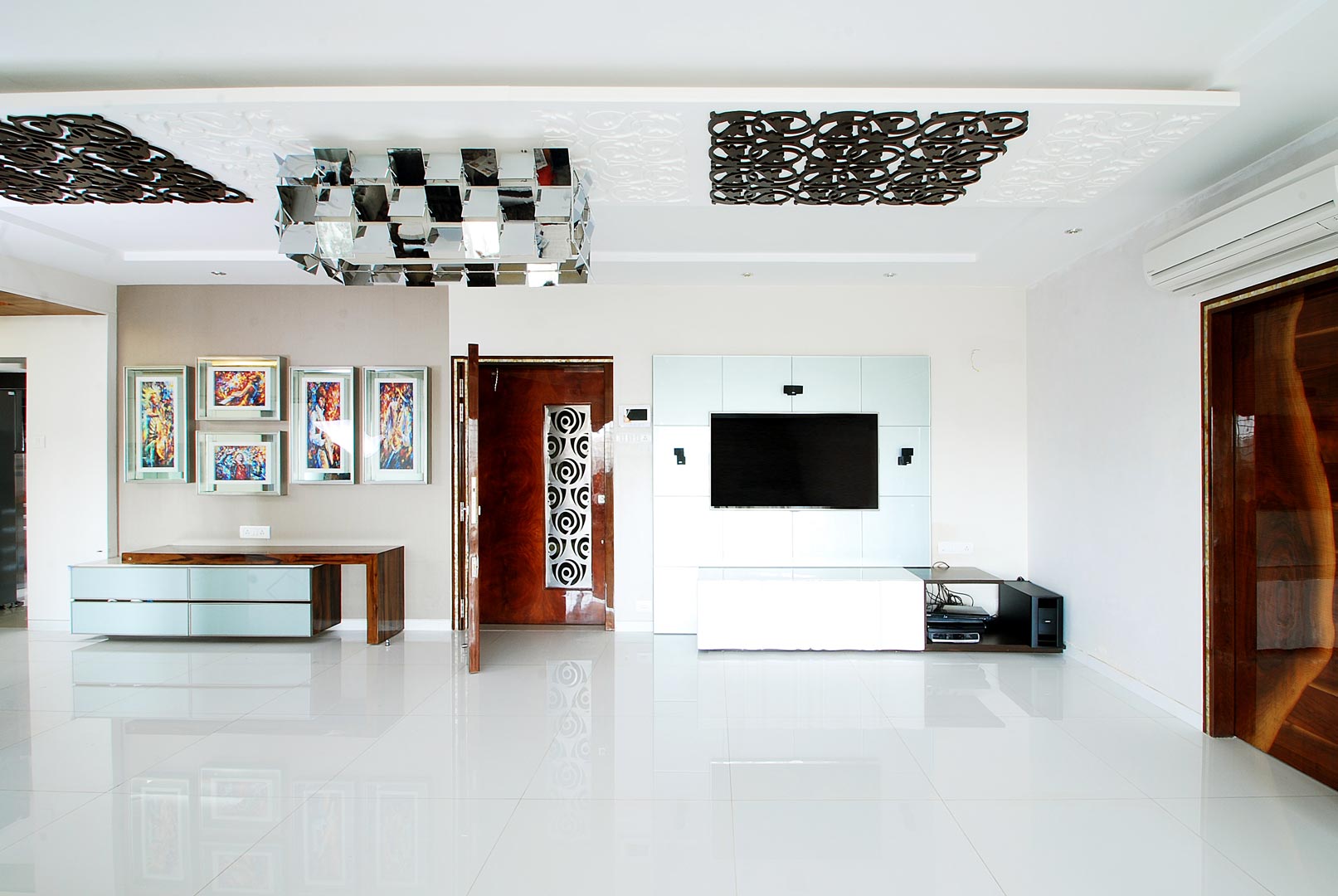 After designing their house in Borivali, we had the privilege to design their Santacruz home as well. Already knowing their taste and requirements, our job was made easy. A blend of contemporary straight lined furniture with traditional motifs judiciously applied to different design elements makes it a harmonious treat to watch.