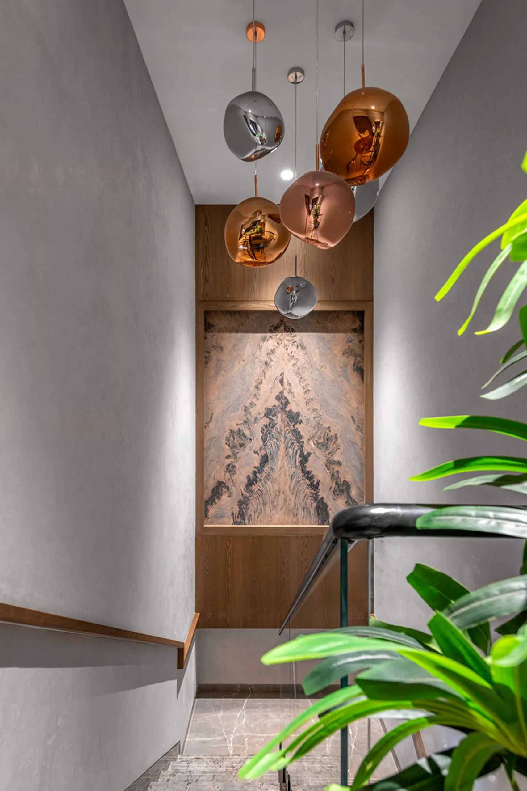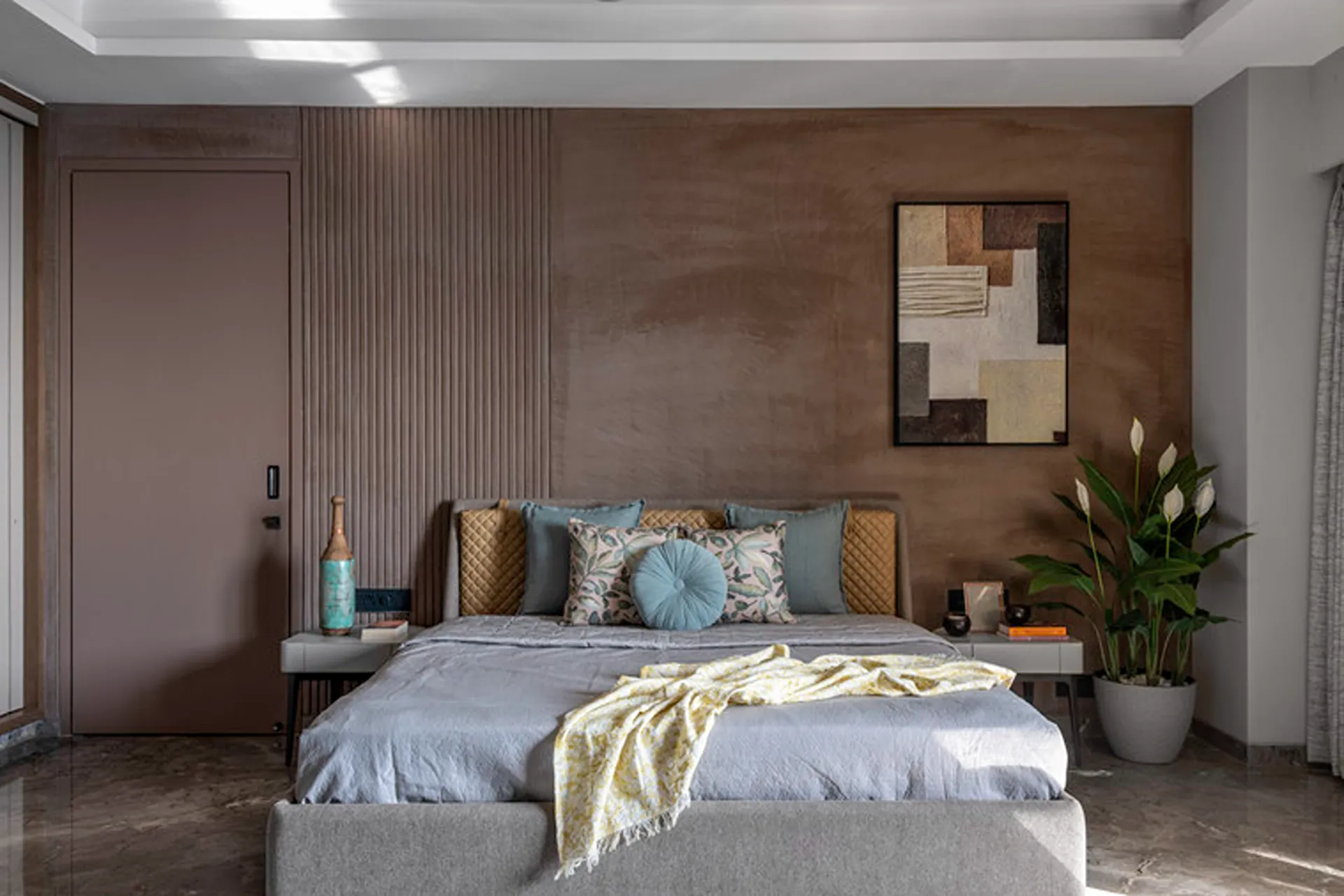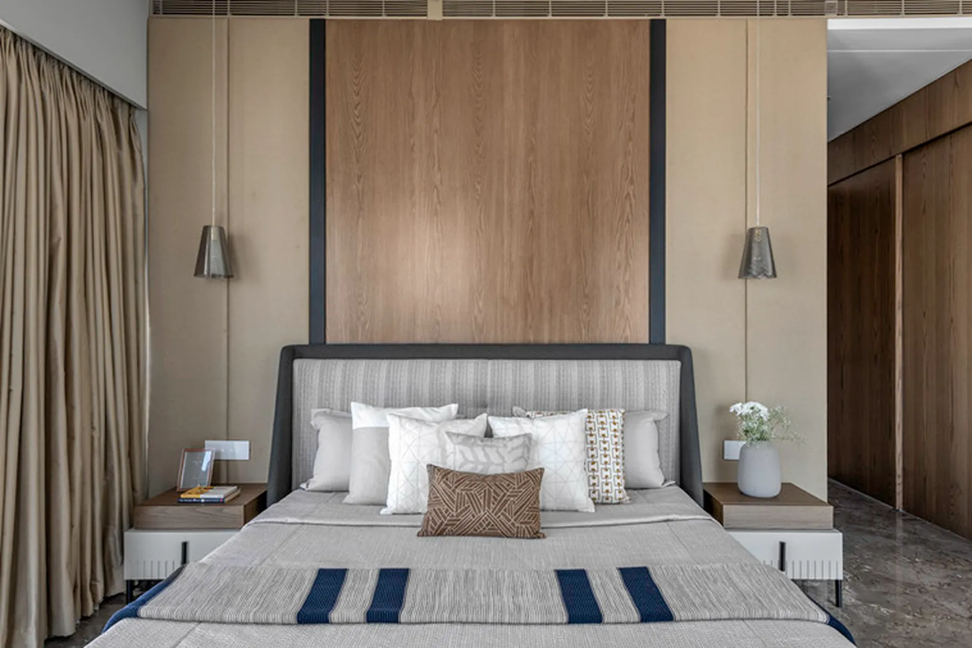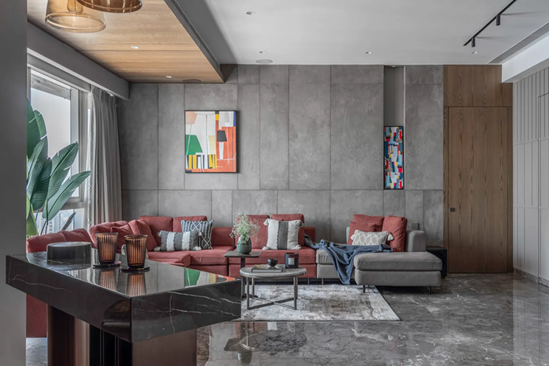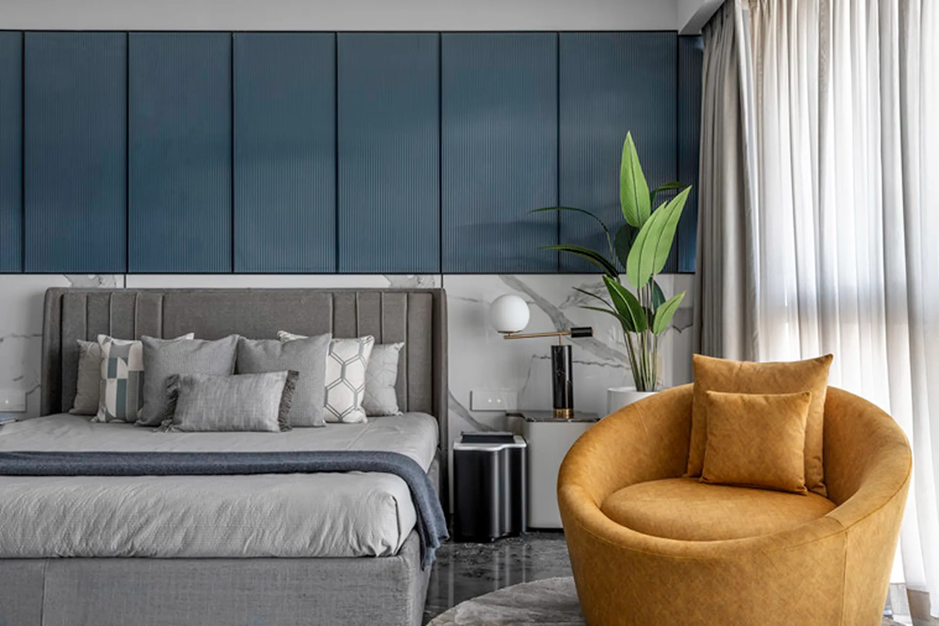 Thoughtful zoning plays a key role in amplifying the expanse, allowing seamless transitions between public and private areas while enhancing the sense of volume and flow. Full-height glass façades wrap around the home, inviting in abundant natural light and framing panoramic views that change with the time of day. A seamless blend of rich marble and warm veneer flooring provides a fluid foundation, while neutral earthen tones offer understated warmth.