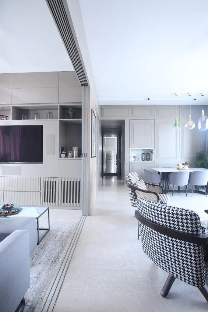 Standing tall in a quiet by-lane in Worli, Mumbai, with sweeping sea views on one side and the city’s skyline on the other, this home is a perfect blend of style, comfort, and functionality.