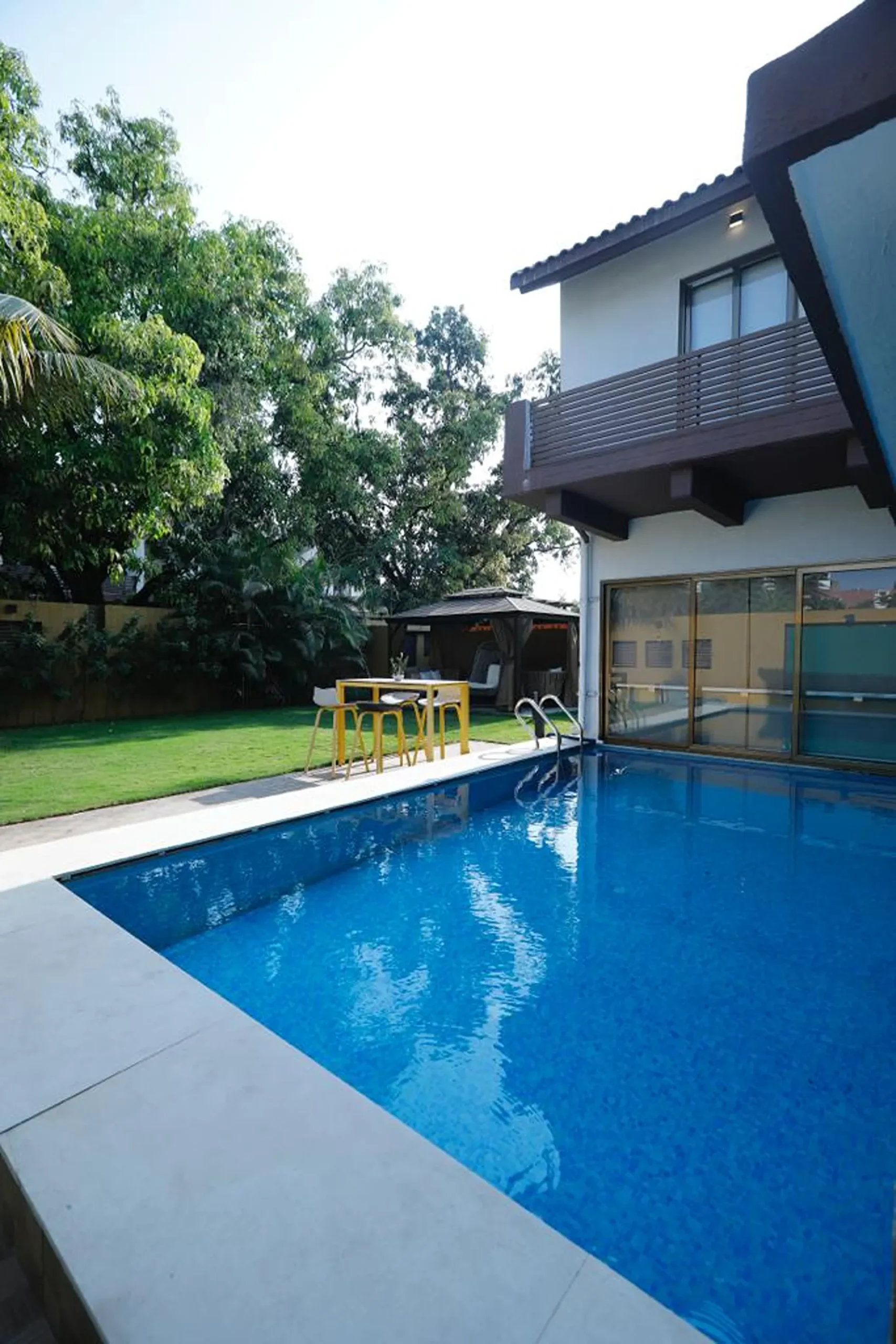 A vibrant holiday retreat, this 4,000 sqft bungalow in Valsad is designed to celebrate relaxation, creativity, and the seamless coexistence of nature and design. The home features a swimming pool, a gazebo, and a lush lawn, creating an inviting outdoor experience, while interiors are thoughtfully curated to uplift the holiday mood with art, color, and playful details that flow throughout the space.